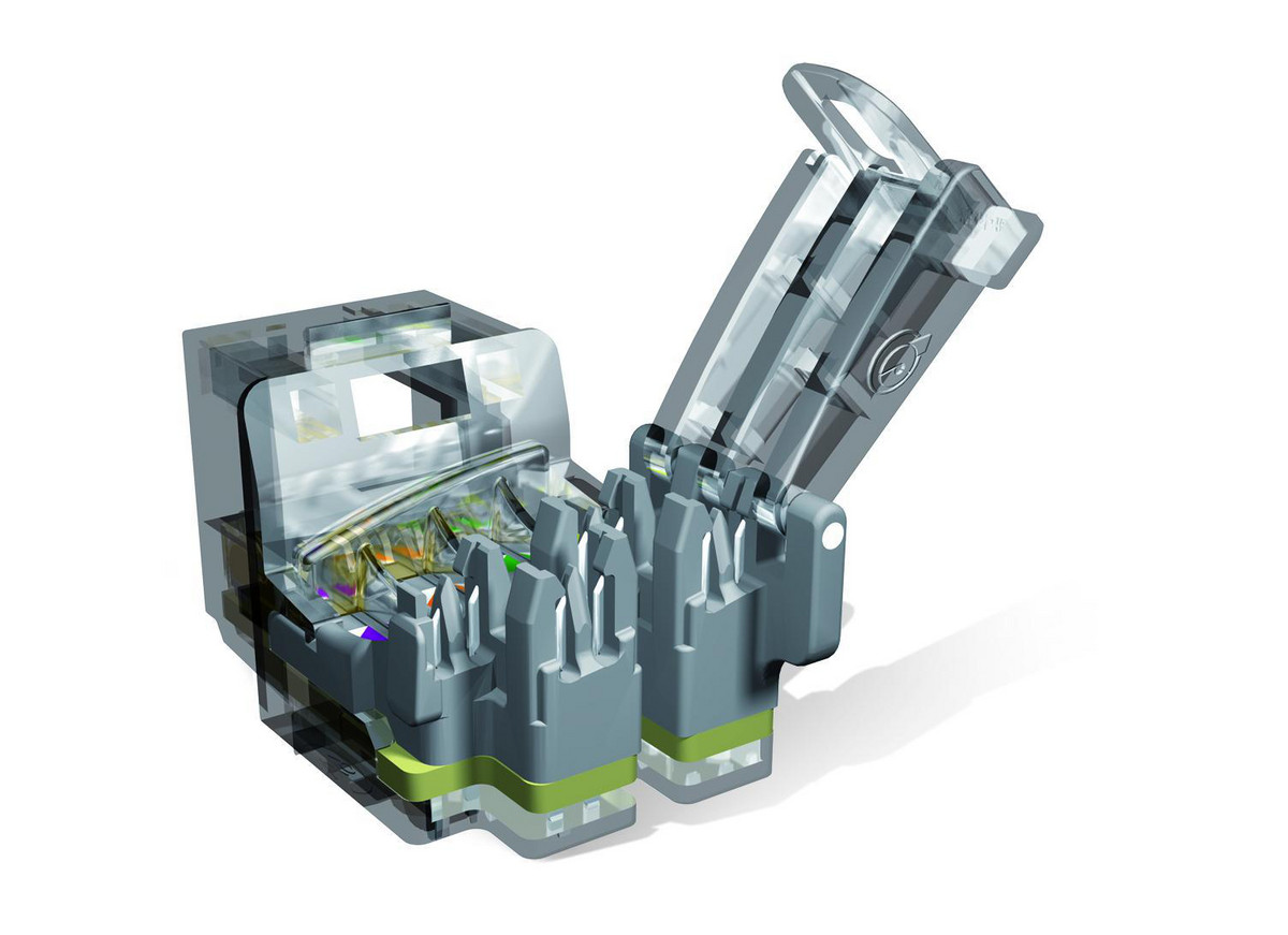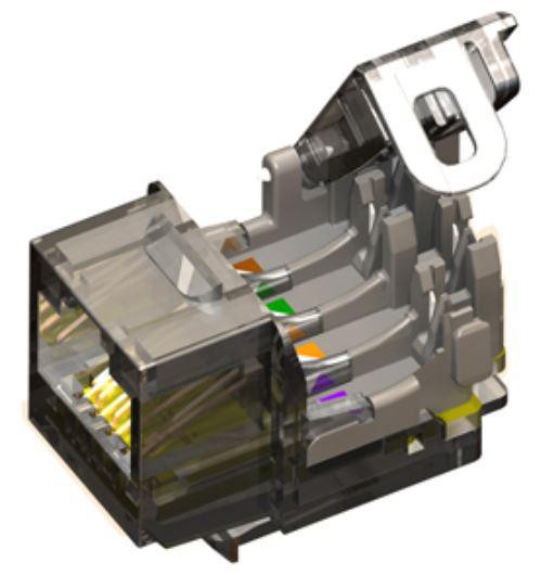 Leviton tool-free UTP konnektorer tilbyder ægte Cat6-ydelse og er fuldt kompatible med de fleste udtag. Stikkene sælges i æsker med 12 konnektorer, og instruktioner er trykt på bagsiden af æsken. Intet specialværktøj er påkrævet. Hver konnektor har integreret farvekodning for ledningsmontering.