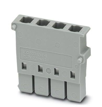Modulstikhus med stiktilslutning, 4 polet, til tværsnit 0,5 mm2 - 2,5 mm2. Grå farve og stikmontage.