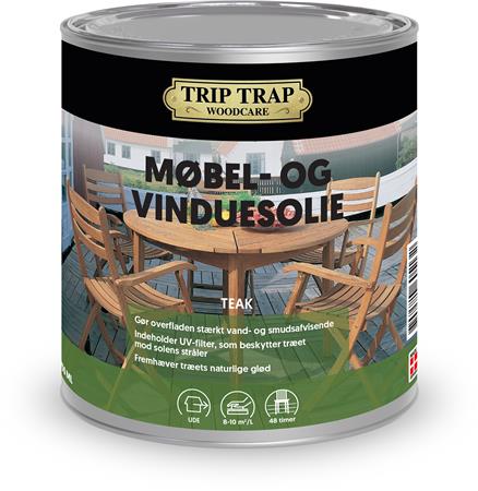 - Trip Trap Møbel- og Vinduesolie anvendes til behandling og pleje af nye og nyafrensede møbler/vinduer og andet udendørs træværk.