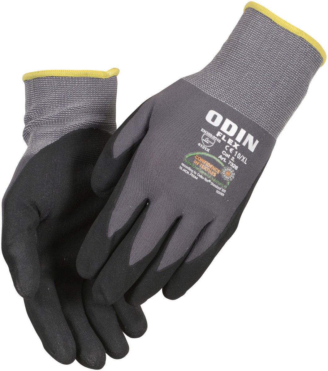 Montagehandske i strikket Nylon/Spandex med nitrilbelægning. Oeko-Tex certificeret.