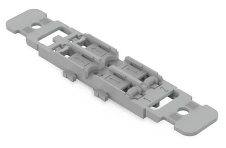 Monteringsholder med 2-vejs trækaflastning til inline samlemuffer med vippepal. Grå med snap in-fod.