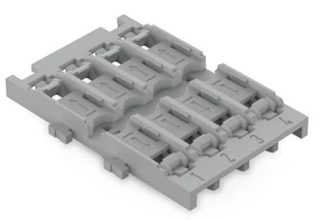 Monteringsholder uden trækaflastning, 4-vejs til Inline fjedersamlemuffe med vippepal og snap in-fod. Farve: grå.