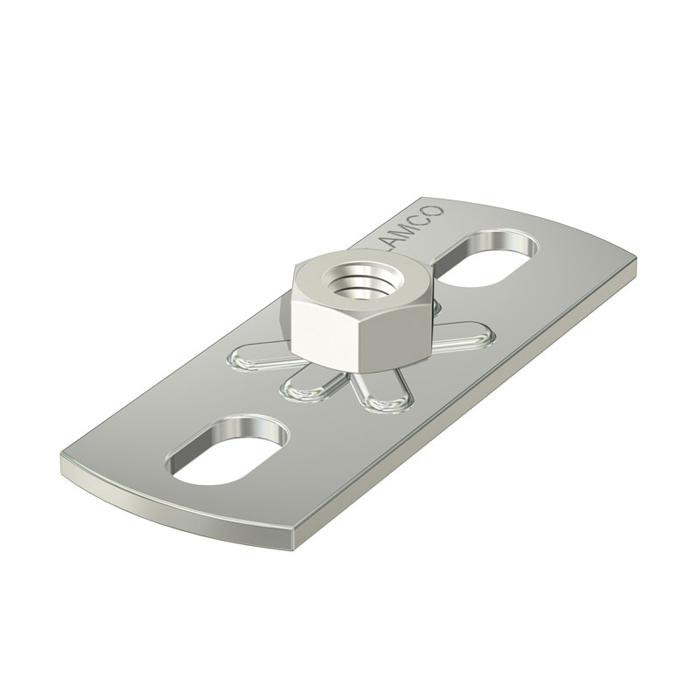Montageflange GP i rustfrit stål, M10, med dimensionerne 80 x 30 mm.