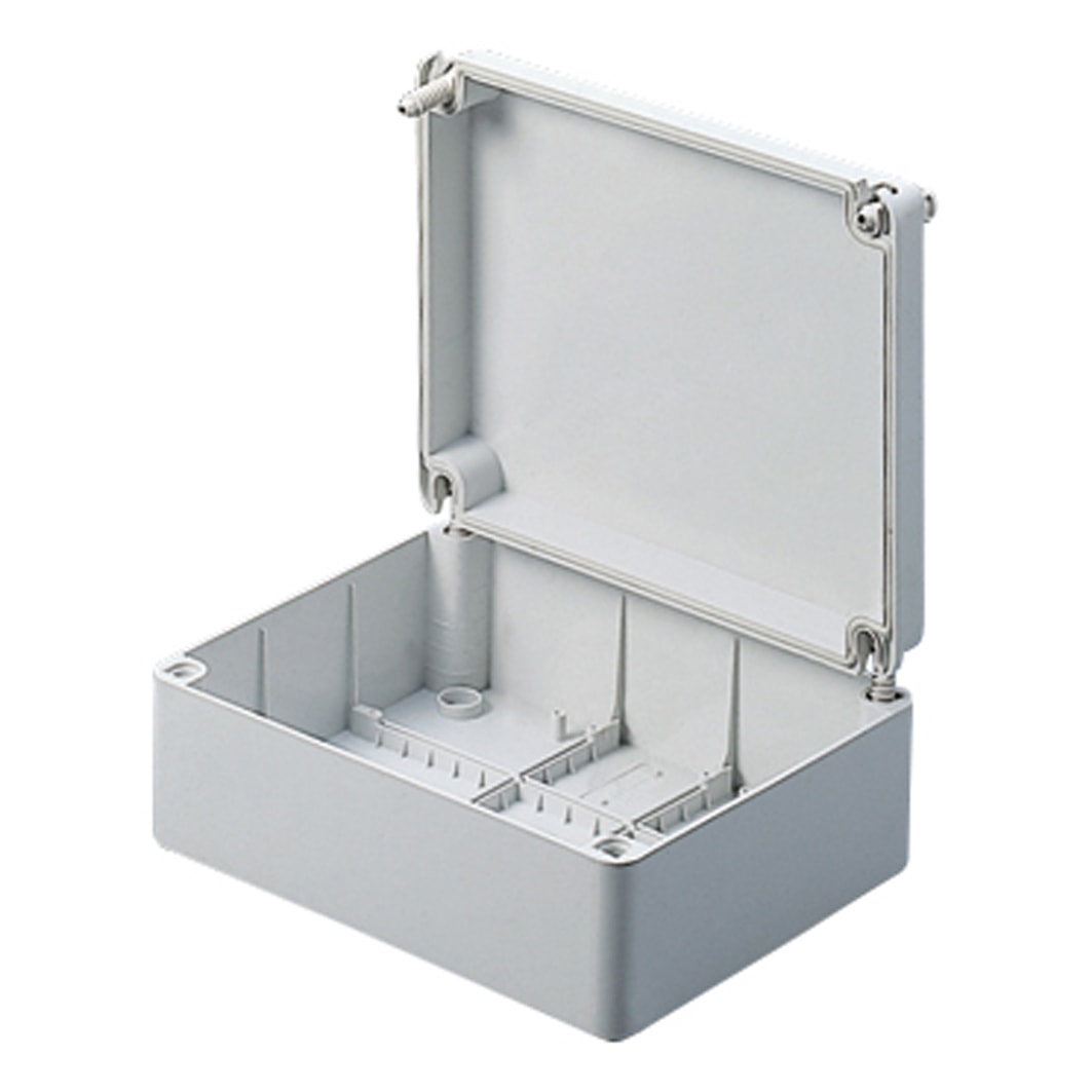 Kassen er fremstillet i et halogenfrit materiale og leveres med et gråt låg, der sikrer en diskret integration i omgivelserne. Den høje IP-klassificering på 56 garanterer beskyttelse mod støv og kraftige vandstråler, hvilket gør den velegnet til brug i krævende miljøer.