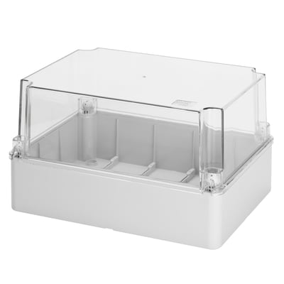 Gewiss montagekasse 159x119x146 mm med IP56-beskyttelse, halogenfri og transparent låg.