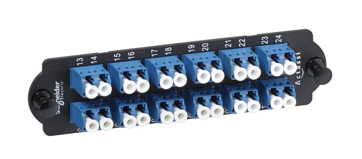 HD montageplade fiber 12xLC duplex SM inkl. fiberadapter (blå) fra Lauritz Knudsen.