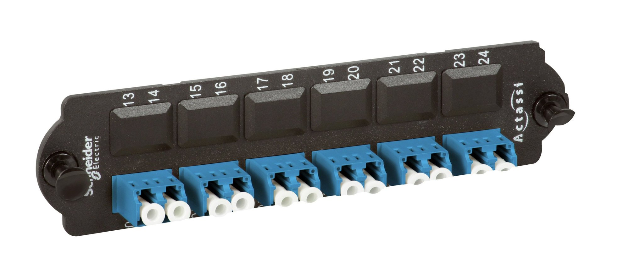 HD montageplade til fiber med 6xLC duplex porte, singlemode, leveres inklusiv blå fiberadaptere.
