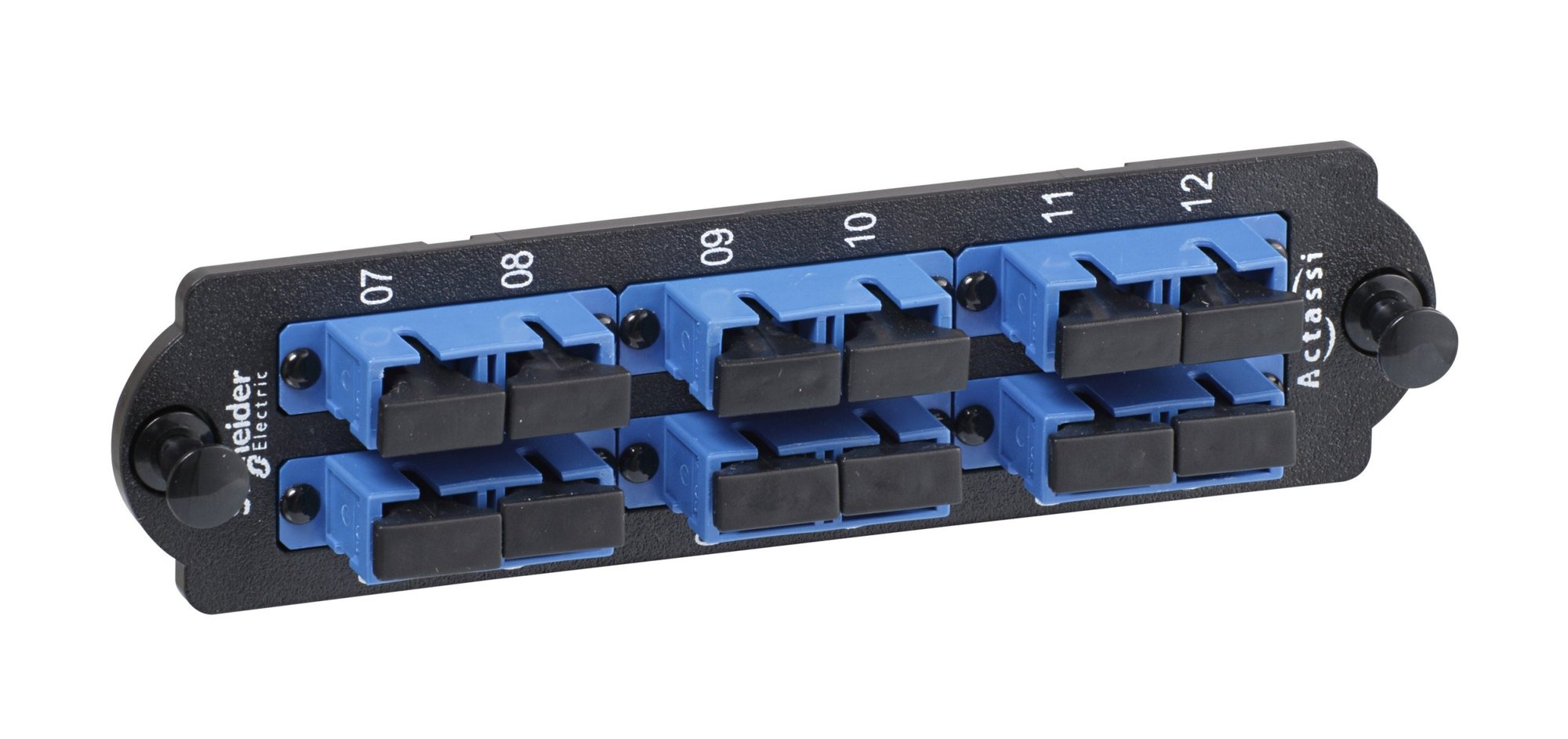 HD montageplade til fiber med 6xSC duplex singlemode (SM), inklusiv blå fiberadaptere.