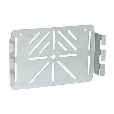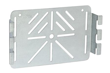 Perforeret monteringsplade til montage af dåser og udtag på gitterbakker. Monteringspladen er fremstillet i varmgalvaniseret plade (60 µm) og kan bruges i miljøklasse maks. C4.