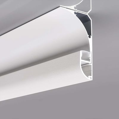Monteringskit til LED-strips i aluminium med diffuser, ideelt til indendørs brug.