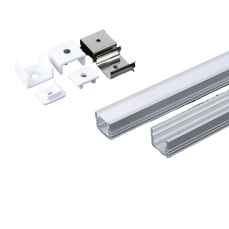 Komplet monteringssæt i aluminium med diffusor til LED-strips, 2 meter langt. Ideelt til elegant og diskret belysning med en jævn lysfordeling.