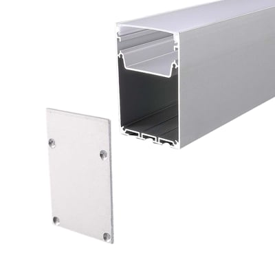 Komplet monteringssæt til LED-striber med diffuser, designet til overflademontering. Fremstillet i aluminium og måler 2000x50x75 mm, hvid finish.