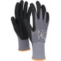 Når du tager handsken på, tilpasser den sig perfekt til din hånd. Hele håndfladen og fingrene er belagt med nitrilskum, hvilket sikrer et præcist greb i tørre miljøer. Handsken er fremstillet af nylon og elastan, hvilket gør den fuldt åndbar på håndryggen og ved håndleddet. Dette bidrager til handskens smidighed og komfort, og sikrer et sikkert greb under arbejdet.