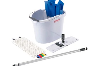 Dette Vileda moppesæt indeholder alt, hvad du behøver for effektiv rengøring af dine gulve. Sættet består af en 10 liters spand med moppeklemme, en mikrofiber fladmoppe, en 34 cm moppe og et justerbart teleskopskaft.