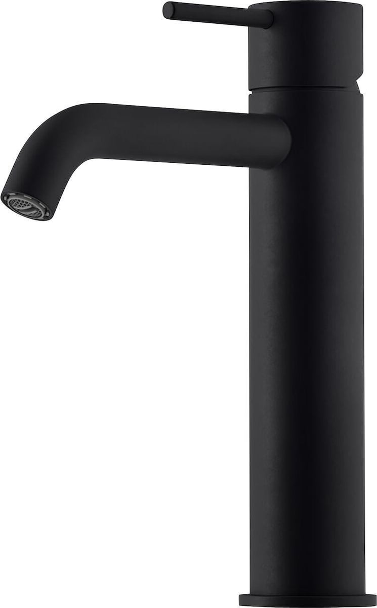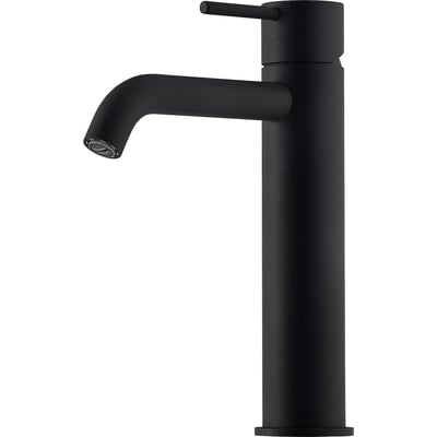Stilrent håndvaskarmatur i mat sort. Medium høj model med 140 mm fremspring. Vandbesparende med 5 l/min.