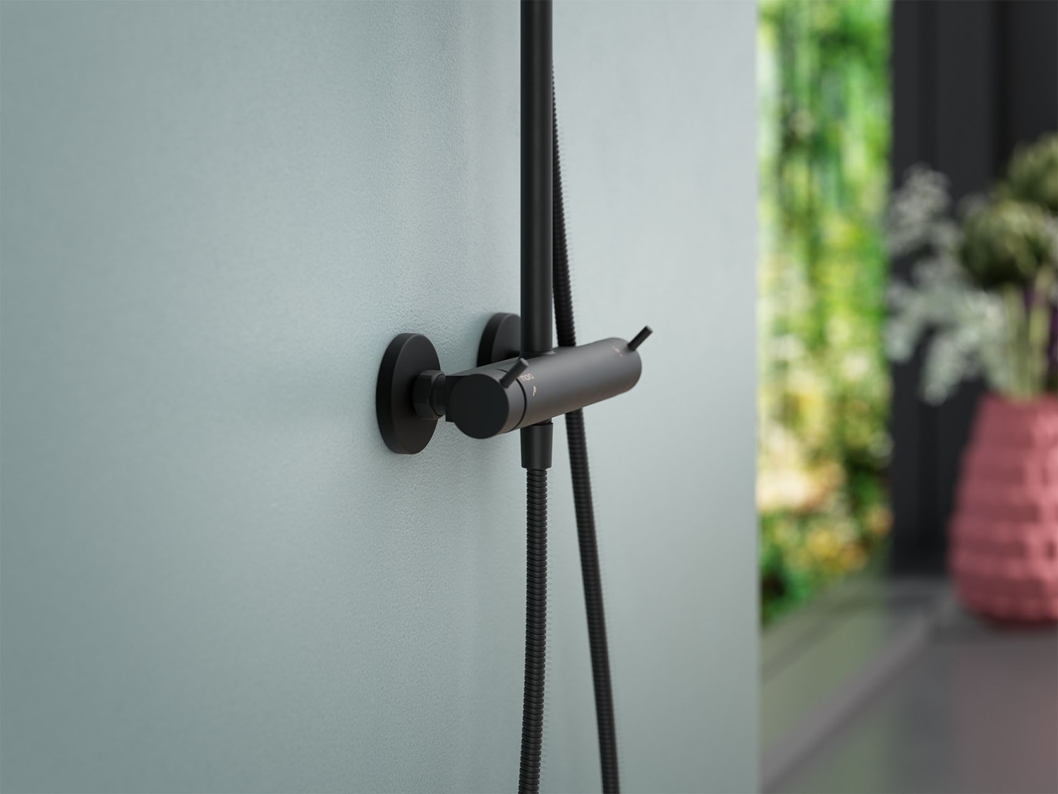 Mora lige forskruning med 3/4" rosette, Ø80 mm, i mat-sort finish.