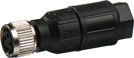 M8 hun stik med skæreklemme (IDC) til kabeldiameter 1,1-1,55mm. 3-polet. IP65/IP67. Maks. 48 V AC / 60 V DC.