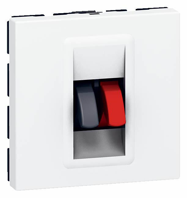 Legrand Mosaic højtalerudtag er den perfekte løsning til multimedieudstyr, lyd, billed og data. Med hurtig tilslutning uden brug af værktøj er installationen nem og effektiv.