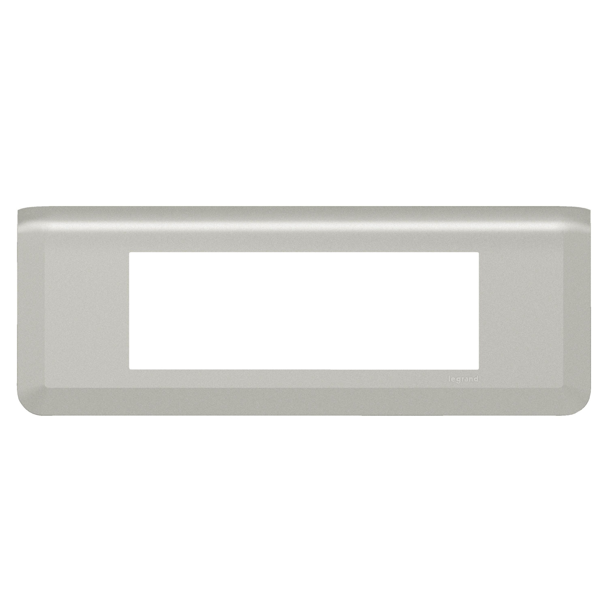Mosaic ramme, horisontal, 6M, alu RAL 7040. Denne ramme bruges sammen med en montageramme og er en del af Legrands installationsmateriel, der er kendt for hurtig installation og et flot design.