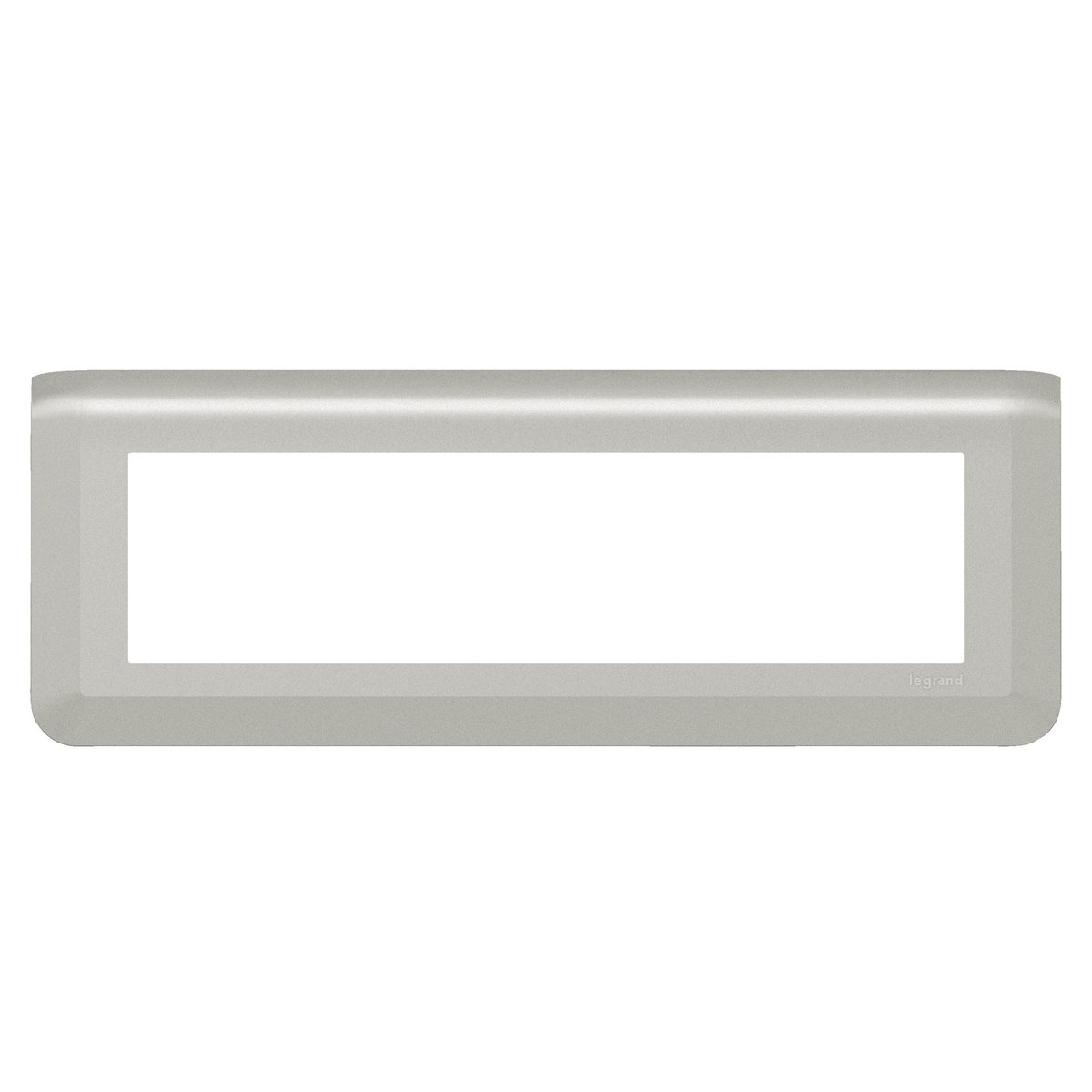 Denne horisontale Mosaic ramme i aluminium (RAL 7040) er designet til brug sammen med en montageramme. Den er ikke egnet til Legrand kliksystems kanaler eller gulvbokse.