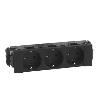 Legrand Mosaic stikkontakt Schuko 3x2pol med M-jord, 16A og 6M i matsort design. Hurtig installation og flot design. Dækker over 400 forskellige funktioner.
