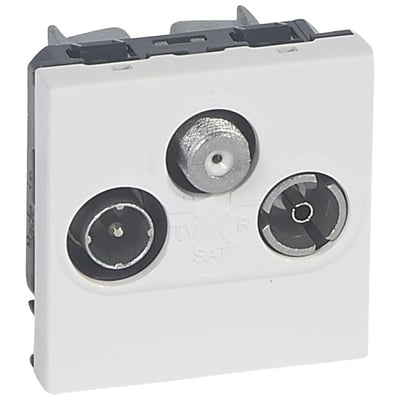 Dette TV-R-SAT stik fra Legrand er udført i aluminium og sikrer en stabil forbindelse til dine TV-, radio- og satellitsignaler.