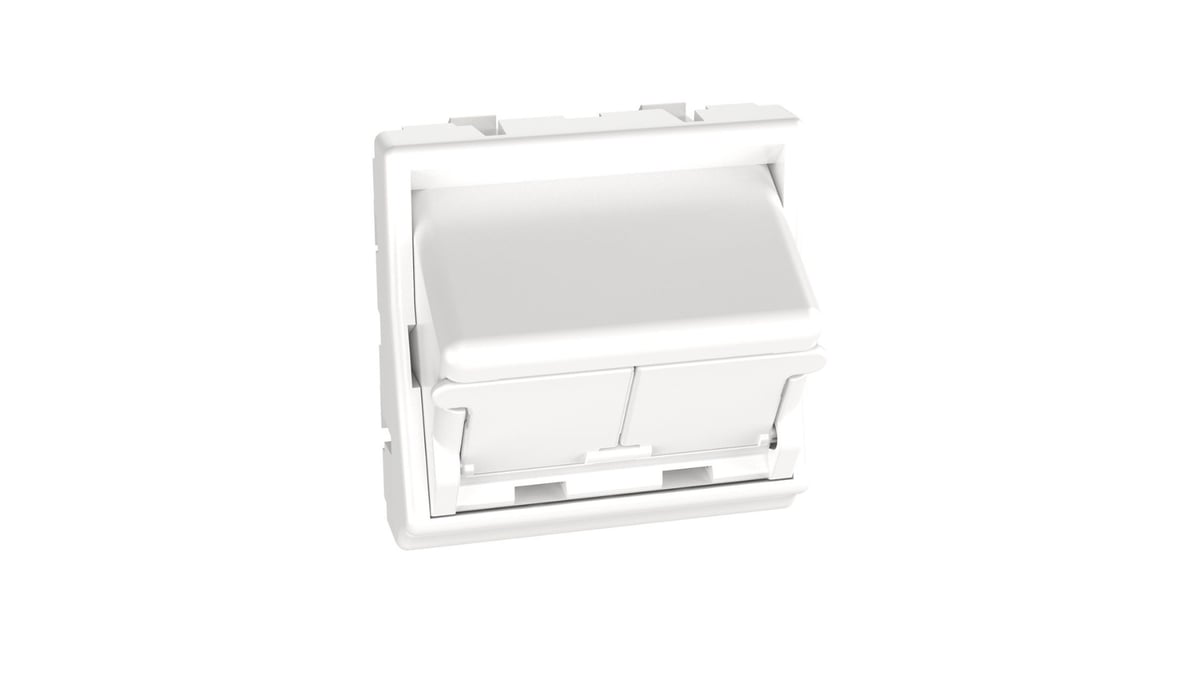 Dataudtag 45x45 til 2x Panduit Mini-Com Modular Jack med støvklaplåg. Kan bruges med ramme FCFPAW eller direkte i Legrand kanal.