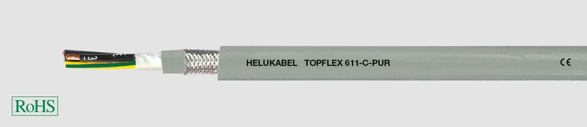 Topflex 611-C-PUR motorkabel til produktionsmaskiner, robotteknologi og kabelkæder. Resistent over for olier, fedt, kølemidler og opløsningsmidler. Velegnet til udendørsbrug.