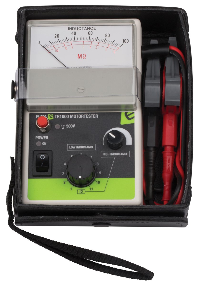 Motortester til motorer, generatorer og frekvensomformere. TR1000 måler induktans og isolationsfejl direkte på motoren eller via installationen.