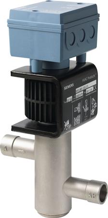 2-vejs ventil til kølemidler, indvendig tilslutning ved sammenlodning, DN20, kvs 2.5, AC / DC 24 V, DC 0/2...10 V / 0/4...20 mA.