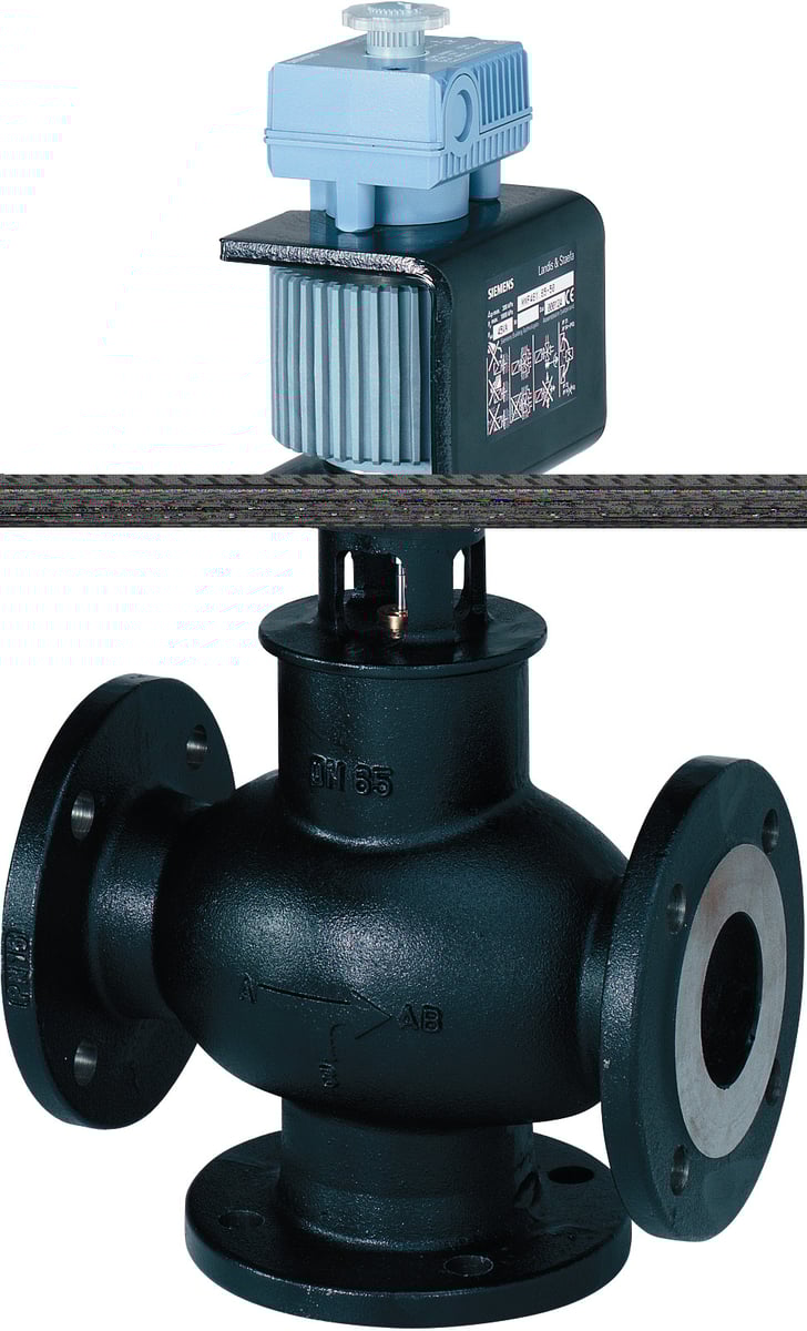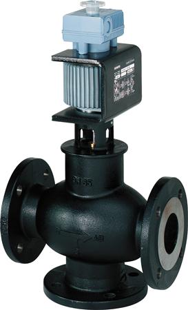 Blande/2-vejs magnetisk reguleringsventil med flange, PN16, DN15 og kvs 1.5. Styres med AC/DC 24 V, DC 0/2...10 V / 4...20 mA.