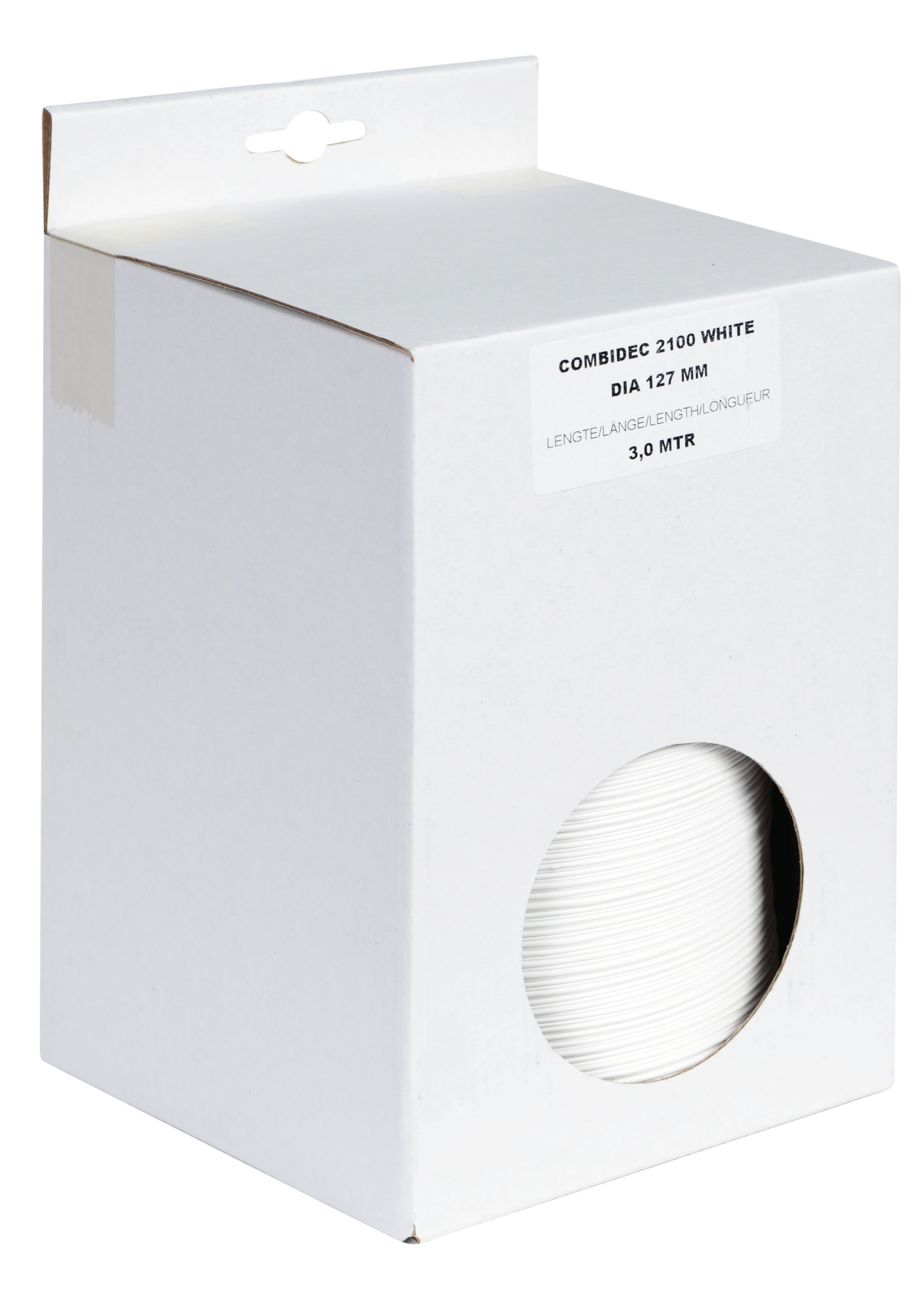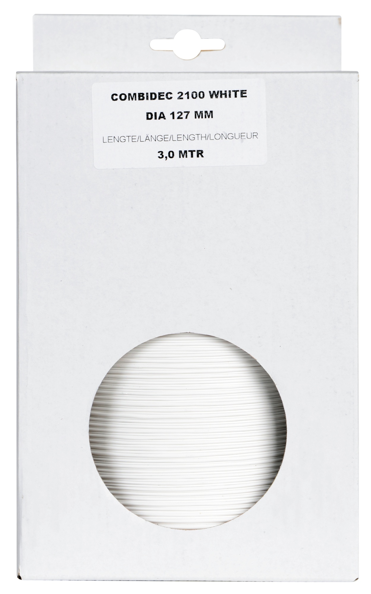 Monteringssæt med en driftstemperatur på 140°C, 127mm/5" diameter og 3 meter længde. Farve: sølv/hvid.