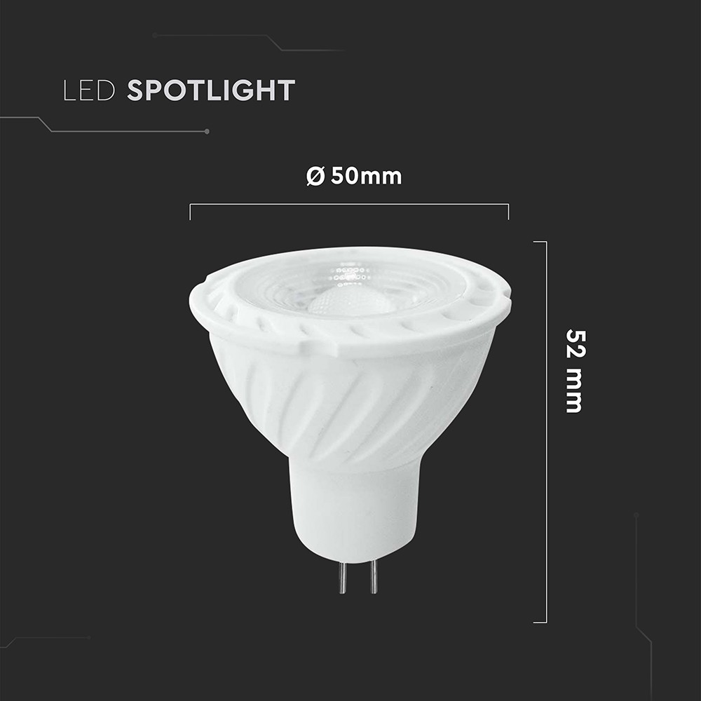 Effektiv 6W LED spot med GU5.3 fatning og 12V. MR16 format med 38 graders spredning og IP20. Giver 445lm varmt lys (3000K).