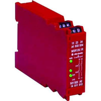Allen-Bradley Guardmaster Minotaur sikkerhedsrelæ til fejlfinding, sikker kobling og manuel reset. Opfylder EN 60204-1 og EN954-1 standarder.