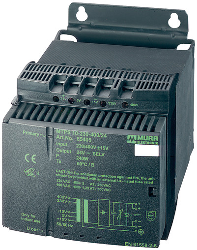 MTPS strømforsyning med 230/400+/-15VAC indgang og 24V/4ADC udgang.
