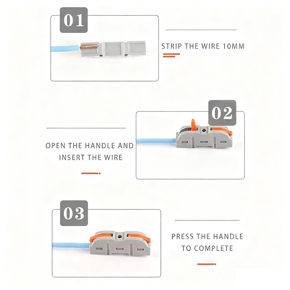 Mufferne er konstrueret til at håndtere ledninger med et tværsnit fra 0,32 mm² til 2,5 mm², hvilket gør dem velegnede til både tynde signalkabler og tykkere strømkabler. Med en spændingskapacitet på 230V er de kompatible med standard elinstallationer. Deres kompakte dimensioner (14 mm bredde, 40 mm højde, 14 mm dybde) gør dem nemme at installere selv i trange rum.