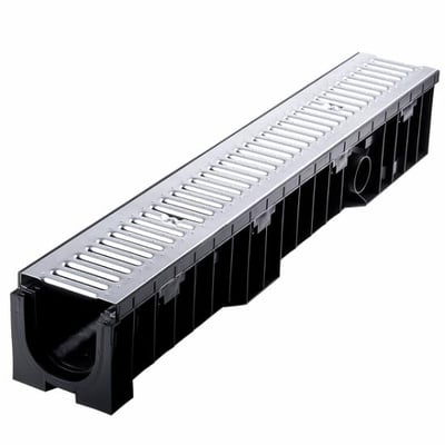 Robust Mufle VIP 100 afvandingsrende på 1000 mm med galvaniseret rist, designet til en belastningsklasse A15 (1,5 ton).