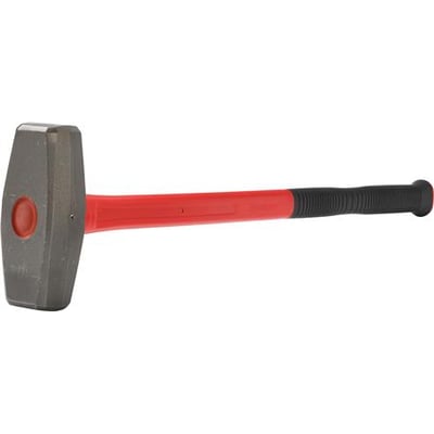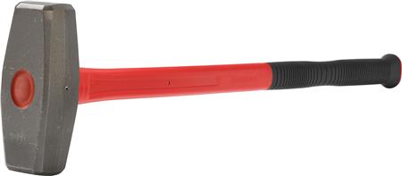 Mukkert med sandblæst og klarlakeret hoved, samt hærdet firkantet slagflade. 850 mm langt glasfiberskaft med gummigreb.