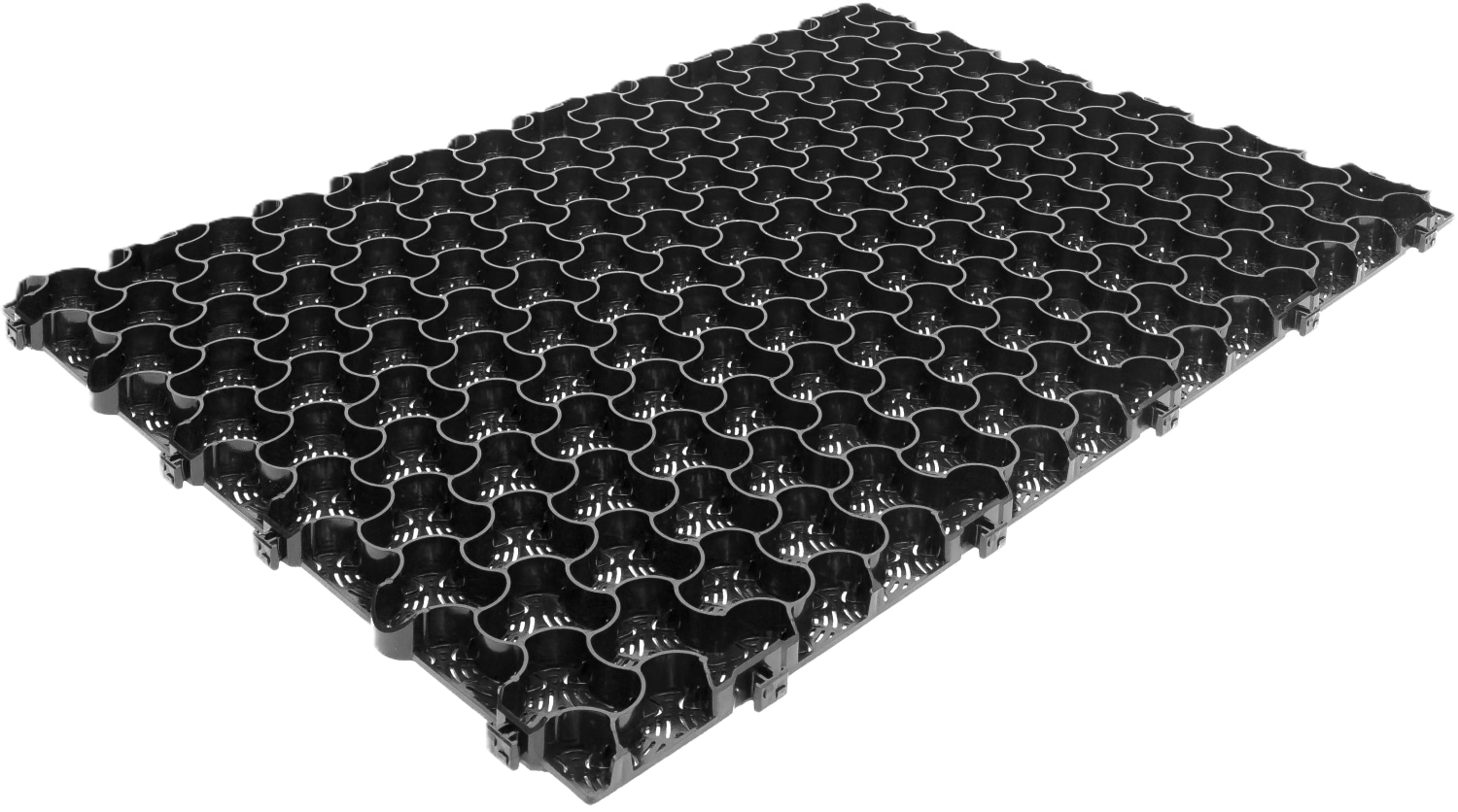Græs-/grusarmering fra Multidal, ideel til stabilisering af underlag. Fremstillet af genbrugsplast og måler 1132 x 783 x 30 mm.