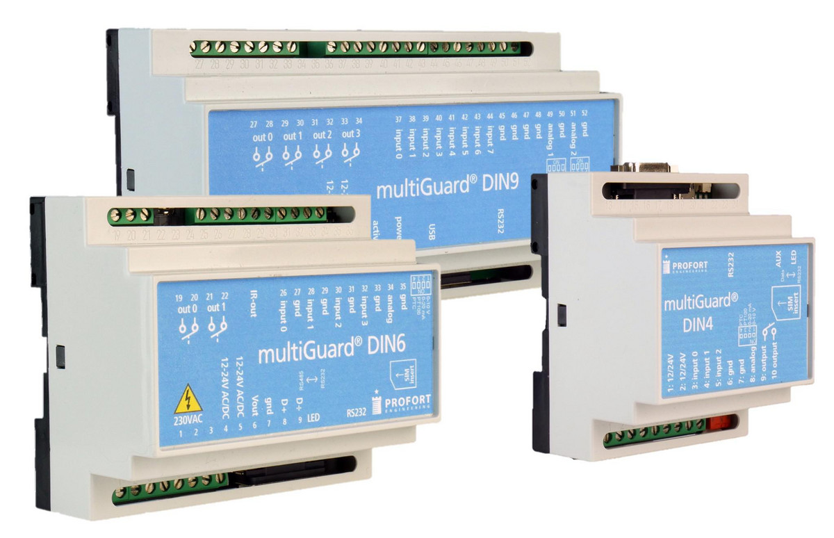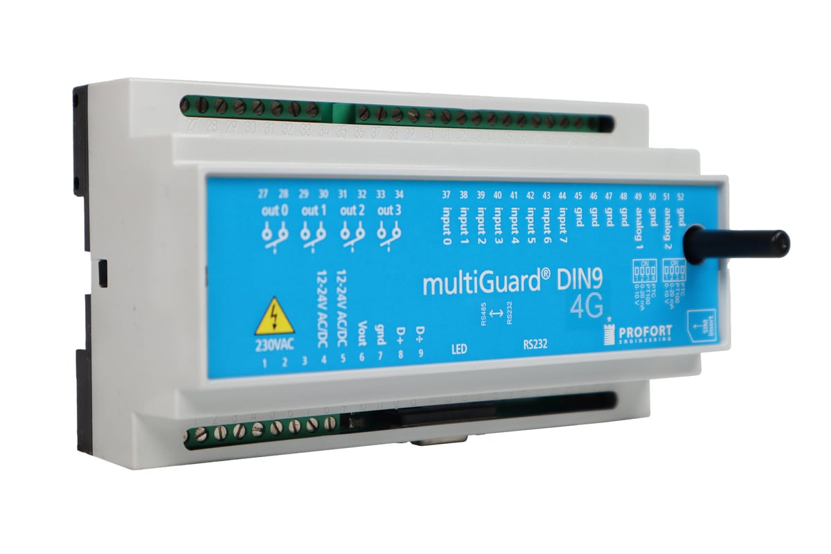 multiGuard DIN9 er en fleksibel løsning til overvågning og styring af tekniske installationer i industri, landbrug og private hjem. Den er ideel til pumpestationer, vandingsanlæg, varmestyringer, ventilationsanlæg og alarmanlæg.