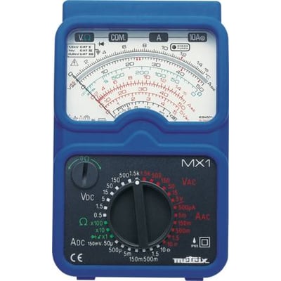 Metrix MX 1 er et robust analogt sikkerhedsmultimeter, der kan måle spænding op til 1500V AC/DC. Sikkerhedspakken inkluderer prøveledninger med SECUR X system, der sikrer, at ledningerne ikke falder af instrumentet. Ved måling af modstand lyder en alarm, hvis der måles på spændingsførende dele. MX 1 tager ikke skade ved spænding op til 400Vrms.