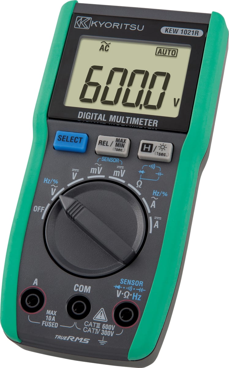Kyoritsu 1021R er et nyt Sand RMS multimeter designet til måling på alle typer signaler. Instrumentet har et super kompakt design og tilbyder automatisk områdevalg, min/max/relativ måling samt et belyst display og datahold-funktion.
