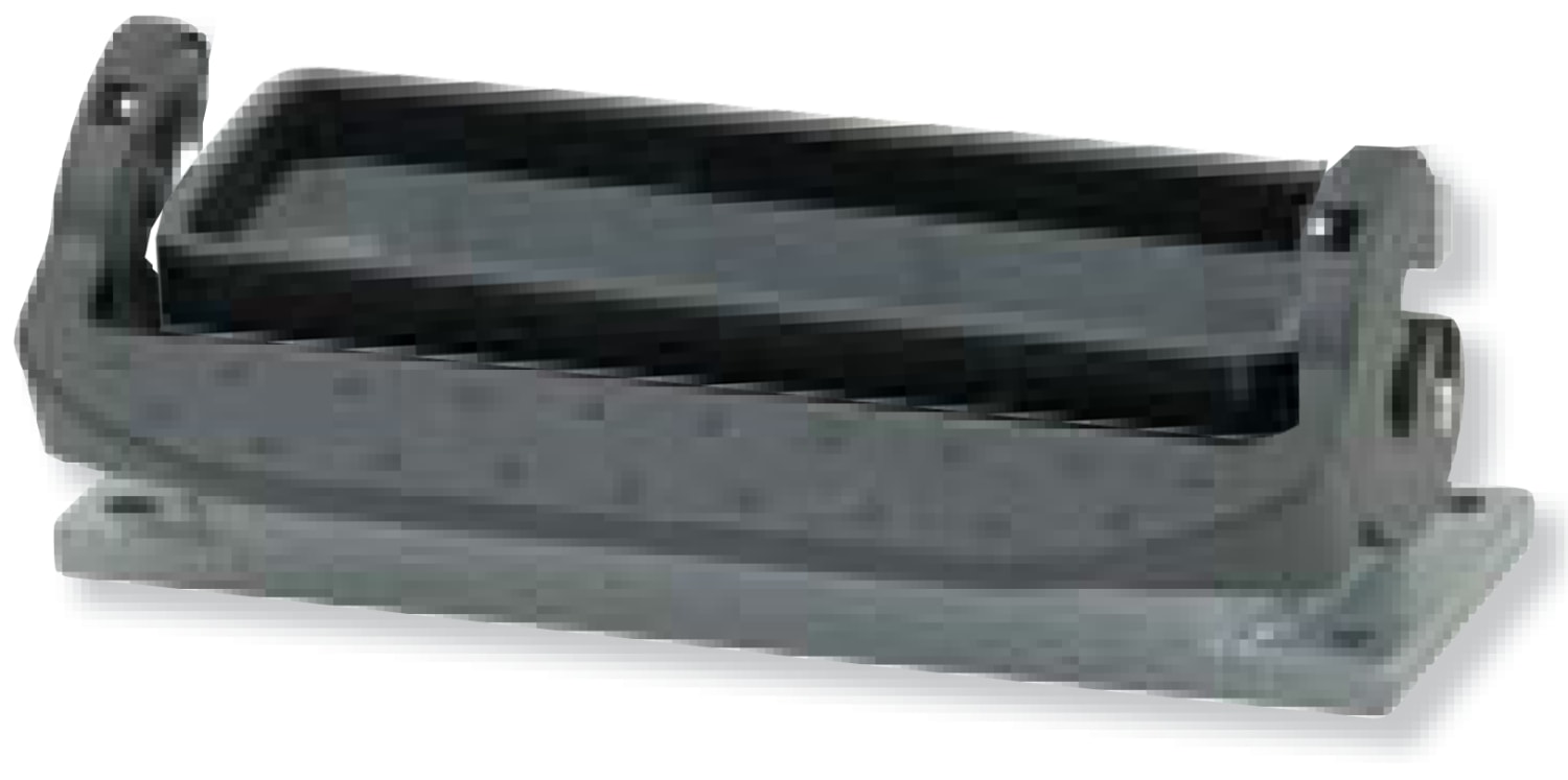 Procon chassishus B10 med 28mm højde og langsgående låsebøjle. Multistikket overholder standarder og er kompatibelt med andre fabrikater. 16A, 500V, pulverlakeret aluminium, IP65.