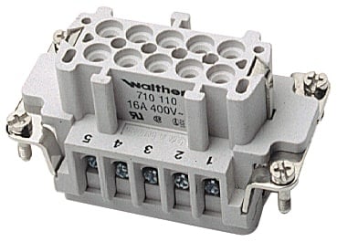 Procon B-bøsningsindsats med 10 poler, 16A og 500V. Mærket 1-10.