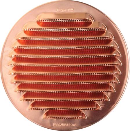 Kobber murrist, Ø150 mm (ydre diameter), med insektnet og skruehuller. Velegnet til montering på ydervægge.