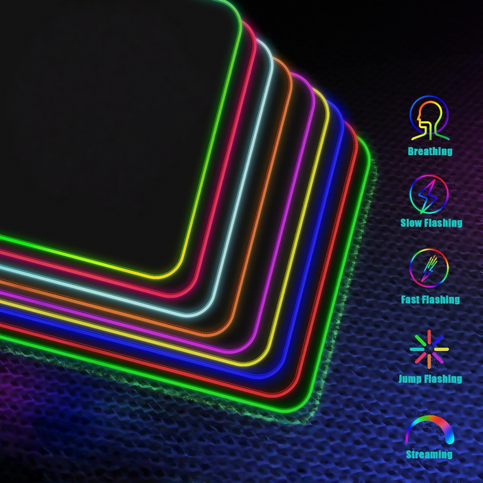 Musemåtten er udstyret med RGBIC-belysning, der giver mulighed for dynamiske og personlige lyseffekter. Du kan tilpasse farver og mønstre for at matche din stil eller dit spil.
