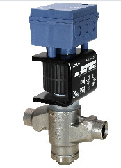2-vejs ventil til kølemidler, tilslutning ved sammenlodning, PN 63, DN25, kvs 2.5, AC/DC 24 V, DC 0/2...10 V / 0/4...20 mA.