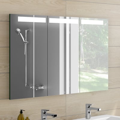 Dette firkantede spejlskab fra MY View IN kombinerer funktionalitet med et stilrent design. Med en bredde på 120.1 cm, en højde på 74.7 cm og en dybde på 10.7 cm passer det ind i de fleste badeværelser.