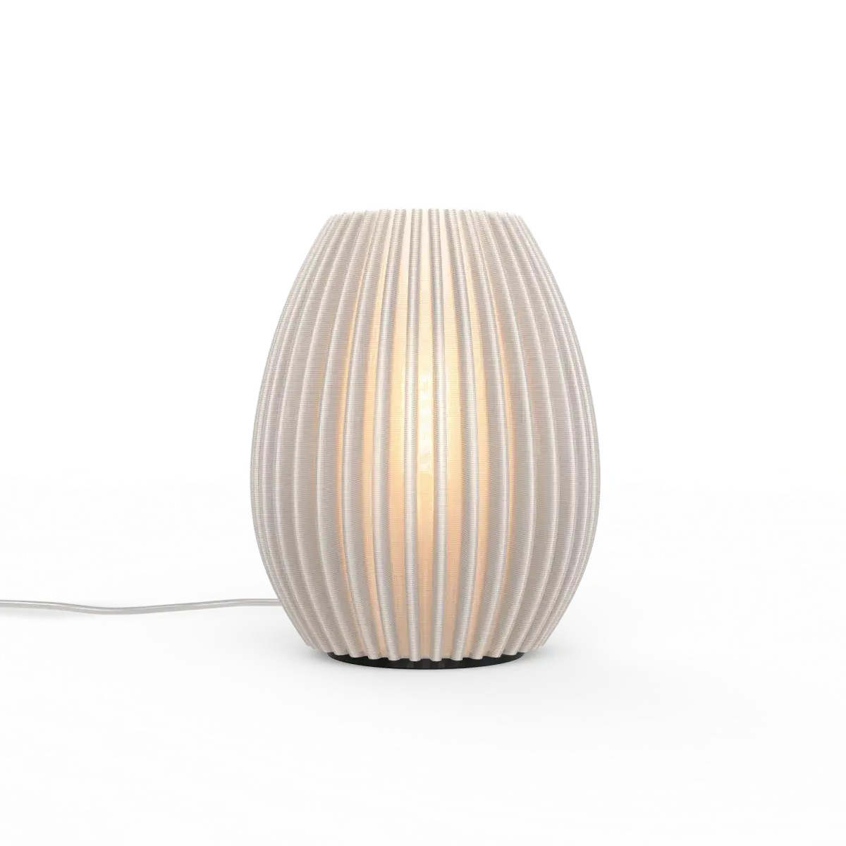 Jagg fås i to forskellige farver: mørkegrå og transparent hvid. Den er udstyret med en E27-fatning, der sikrer kompatibilitet med en bred vifte af lyskilder. Jagg er fremstillet af 3D-printet, biocirkulært polykarbonat.