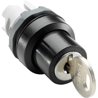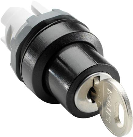 Denne nøgleafbryder har en diameter på 22 mm og er udstyret med et nøgletryk. Den har to faste positioner, hvor nøglen kan udtages i position B.